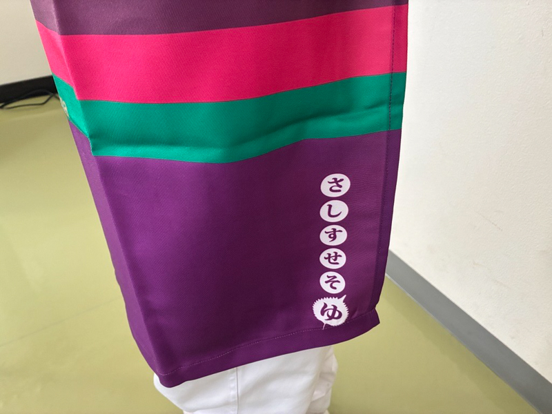 工場で使われているエプロンには、「さしすせそゆ」というキャッチコピーが。日本料理の基本の調味料「さ(砂糖)、し(塩)、す(酢)、せ(醬油)、そ(味噌)」と同じくらい、「ゆかり」が家庭に欠かせないものであってほしいという思いが込められている