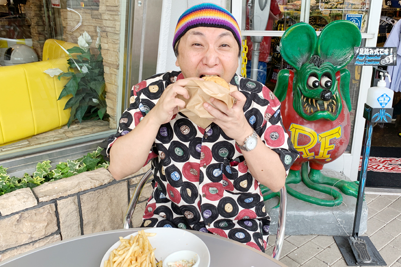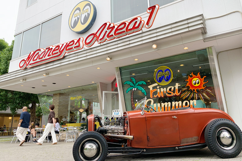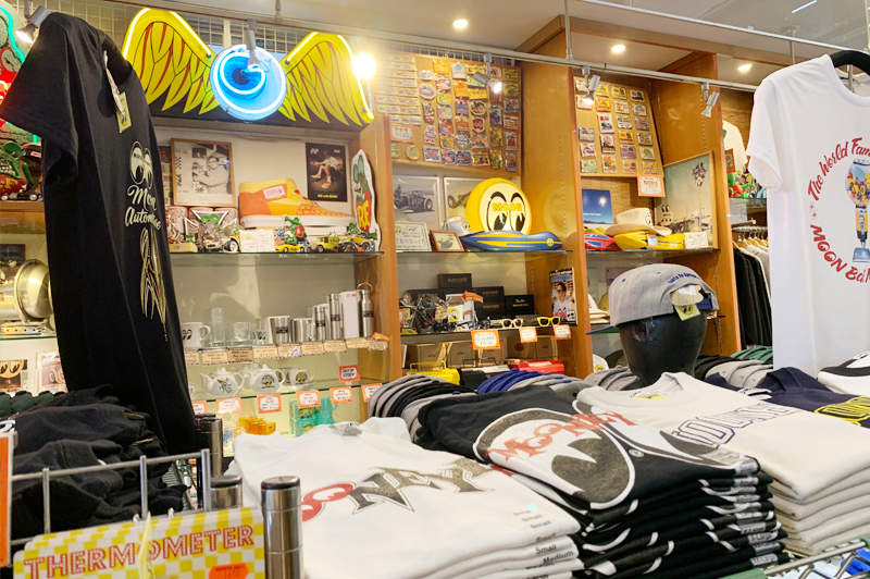 カフェの横にはアメリカンな雑貨やアパレル・車のパーツなどを販売する『MOONEYES』があるのでこちらも立ち寄ってみてください。ハンバーガーだけではなく「“アメリカ”のテーマパークに遊びに行く」感覚で楽しめる場所です。