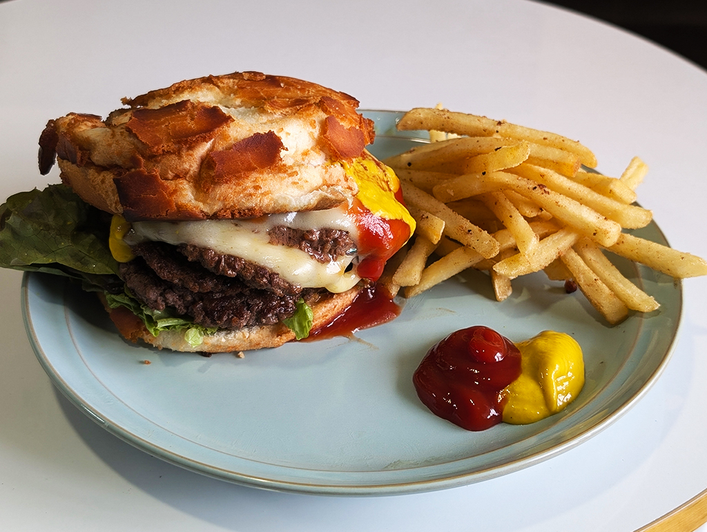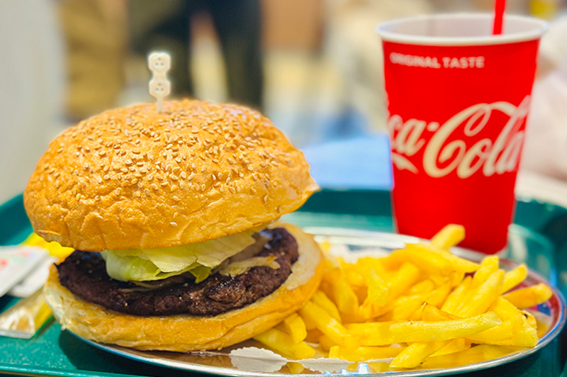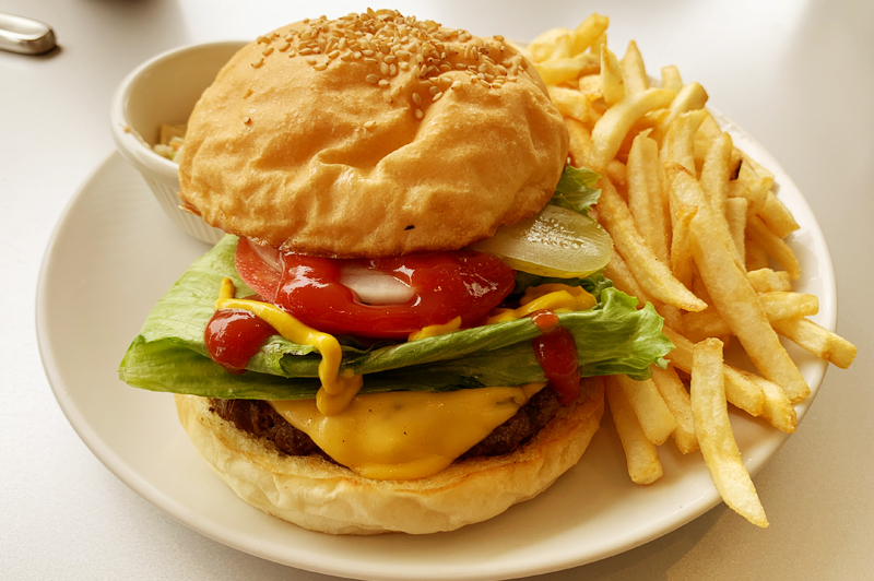 ハンバーガーのビジュアルだけで、現代アートみたいに完成度が高いのすごくないですか? 観賞用として食品サンプルで自宅に置きたくなるほど芸術点が高い。