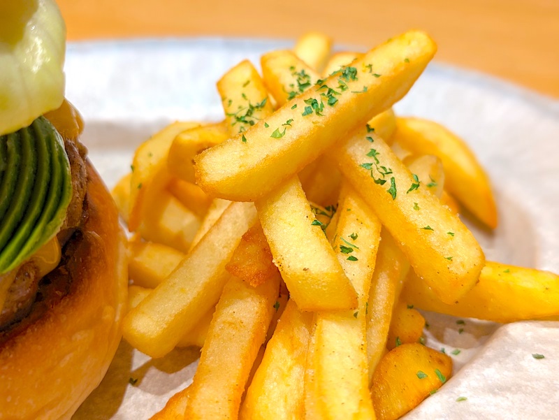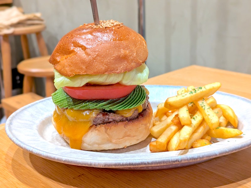 全メニューが完璧に美味しいのですが、今日はアボカドとチーズを一緒に食べたい気分だったので「アボカドチーズバーガー」を注文をしました。プラス200円でフライドポテトも追加できるので、迷わずにセットにします。