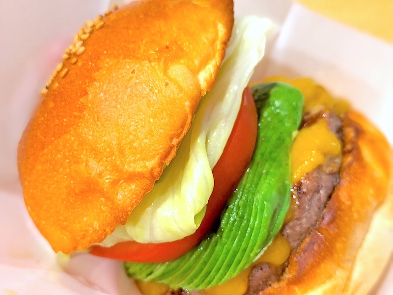 はじめはパティの旨みに気を取られてしまうのですが、食べ進める度に旨みのポイントが変わり、オレンジマスタードのさわやかな旨みであったり、なめらかなアボカドの食感と風味、絶妙にサクッと焼かれたバンズの香ばしい味わいなど、口にした具材から徐々に繊細な主張を感じる不思議な時間を体感します。