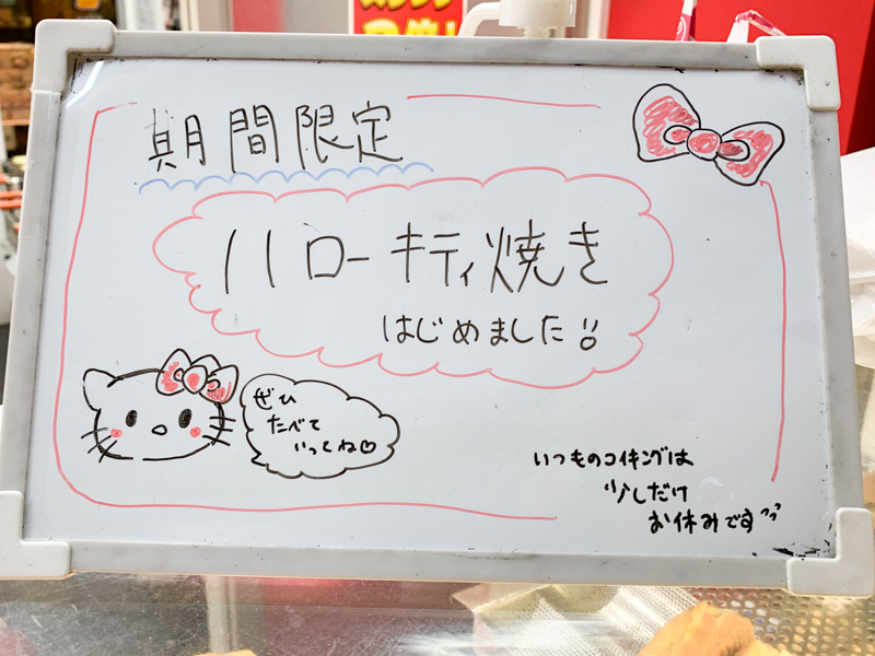 また、秋葉原店はポケモンのコイキングの形に焼かれた「コイキング焼き」が有名なのですが、今日行ったらちょうどハローキティ焼きになっていてコイキング焼きはお休みでした。