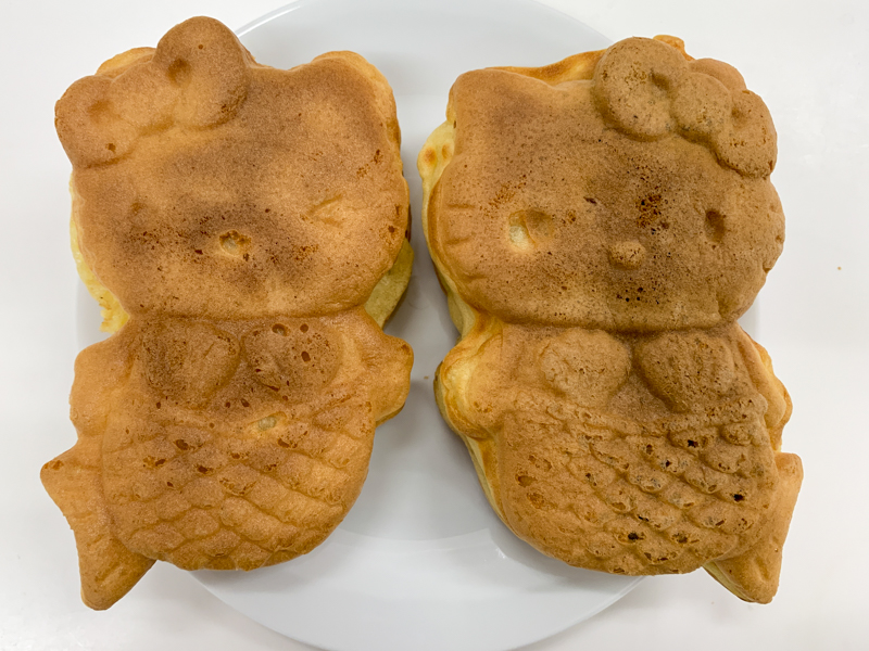 単にキティちゃんの形なのではなく、マーメイドに扮しているのがたい焼きとのコラボをちゃんと考えてるっぽくていいですね。