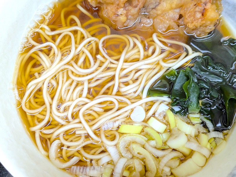 ぶつ切りになったげそ天を一口食べるたび、イカの風味豊かな香りと甘みが口の中で広がり、その旨みにプラスしてやわらかくちょうどいい味付けの蕎麦つゆをすすれば脳内に癒しの信号が流れはじめます。これはマジで美味すぎるぞ!!