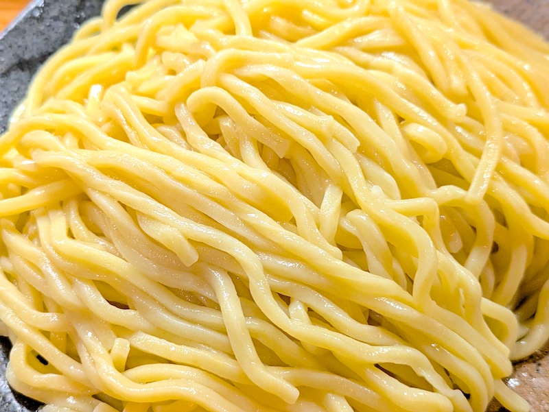 もちもちの太麺の麺もおいしく、あっさりとした小麦粉の甘味と風味が鼻を抜ける感じがたまりません。最初は麺の量が無限に感じますが、おいしいので気づいたら麺がすべて消えます。