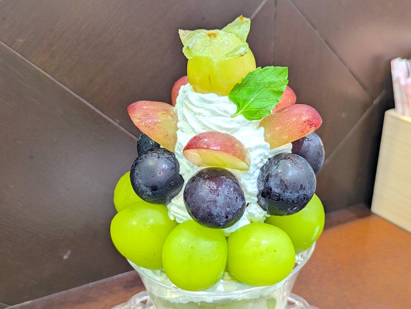 9月〜10月は季節のパフェとして、国産の葡萄をふんだんに使った「ぶどうパフェ(3,300円)」を食べることができたので注文をしてみました。