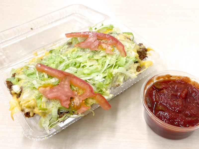 看板商品となっているタコライスは容器いっぱいにずっしりと詰められ、その密度が何より嬉しい!