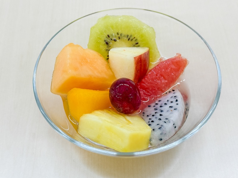 中に入っている新鮮なフルーツは、リンゴ/キウイ/グレープフルーツ/ぶどう/バナナ/メロン/パイナップル/ドラゴンフルーツなどで、そこまで甘くないシロップと合わさって、食べ飽きることなく至福のひとときを過ごすことができます。