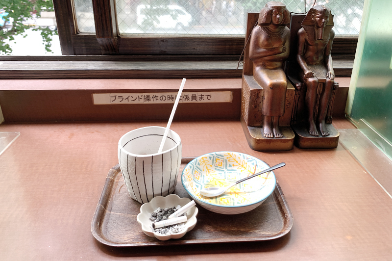 駅からすぐ近くにある喫茶店。看板に注目してほしいのですが、ここ、2階席は全面タバコが吸えるんです!!! うわーー!! 貴重すぎるーー!!!
