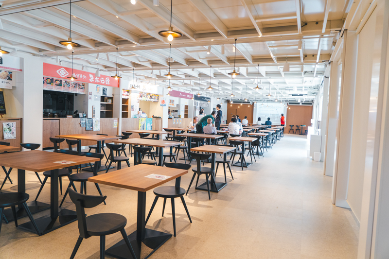 空港の外には「NOTOMORI」という施設も。地元の飲食店が集まったフードコートや、ワークスペースが入った複合施設です。