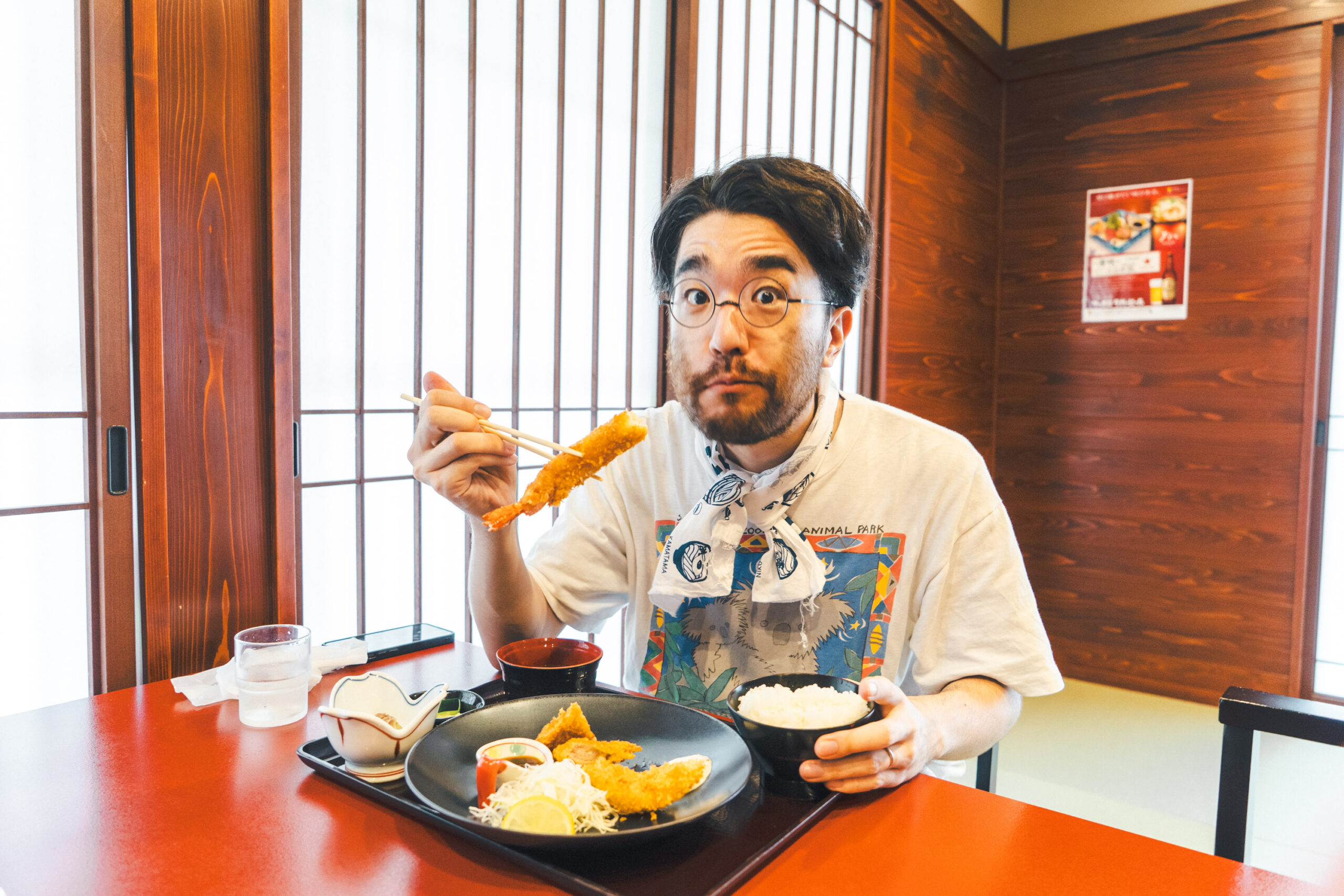 サクサクふわふわのエビフライ、ウマ〜! ランチタイムの店内はにぎわっていました