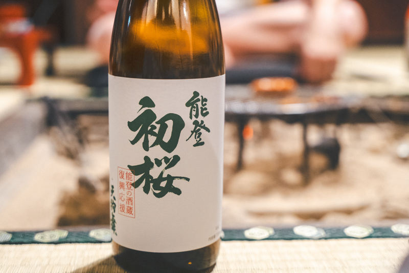 道中、道の駅で購入した日本酒「能登初桜 + 天狗舞」。能登半島地震で被災し、全壊となった珠洲の酒蔵「櫻田酒造」の杜氏である櫻田博克さんと、石川県白山市にある酒蔵「車多酒造」が共同で醸造したもの