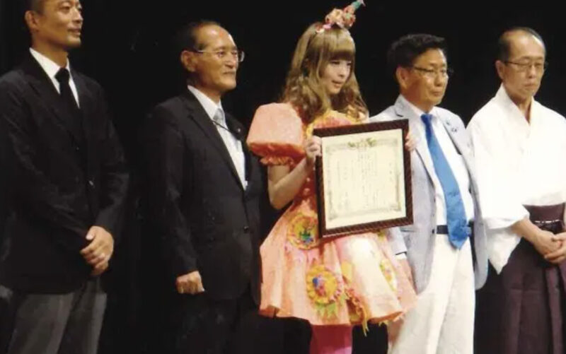 「原宿カワイイ大使」認証式の様子。右から二人目が八木原さん。きゃりーさんを挟んで立っているのが前渋谷区長の桑原さん