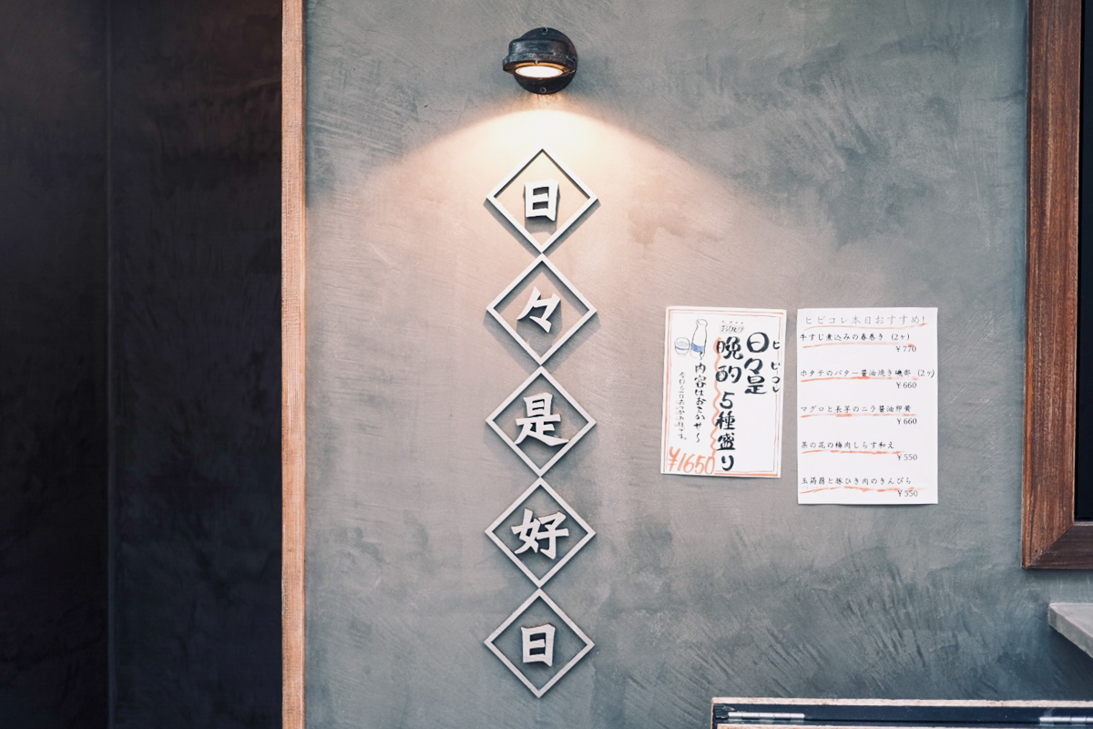 初日の夜、ご飯食べようと歩いていて目に入ったのが、「日々是好日」です。