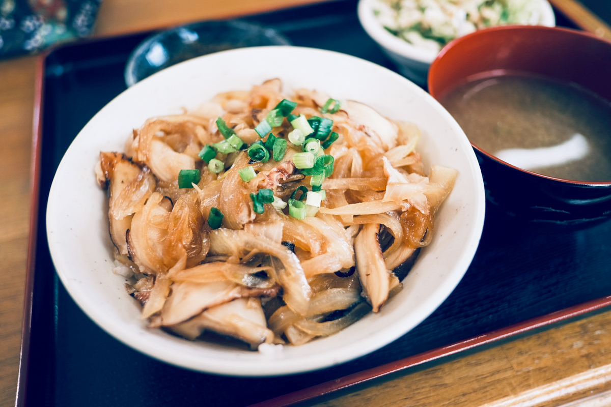 これがめっちゃ美味しかった。乾燥したタコを戻して、炒めて甘辛く味付けされた玉ねぎと合わせた丼。シンプルで美味かったなあ。