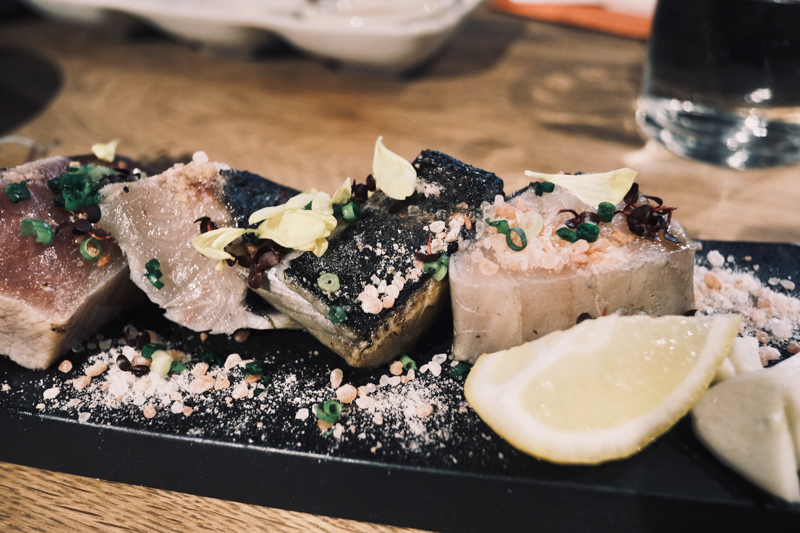 ここでは店主が高知で学んだという「藁焼き」が食べられます。高知で藁焼きというとカツオのイメージが強いと思いますが、「にこらす」の塩で食べる「白身魚の藁焼き」も絶品。