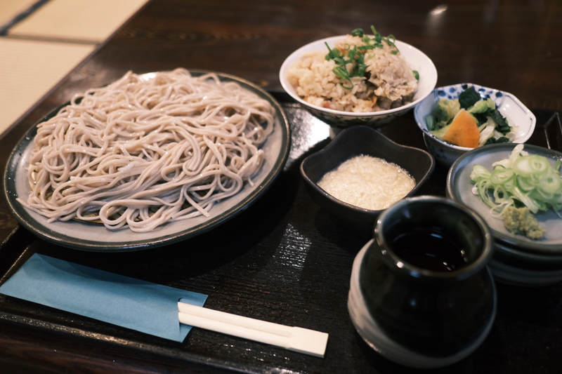 それもそのはず、こんなボリューミーな定食が800円。おそばに日替わりの炊き込みご飯がついているのですが、この日はなんと「餃子ご飯」でした。おそらく餃子と一緒に炊き込んでいるものだと思うのですが、これがまたおいしい。