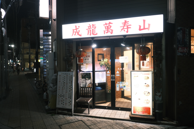 居酒屋の紹介がひと段落したところで、中華のお店を紹介します。まずは「成龍萬寿山」というお店。