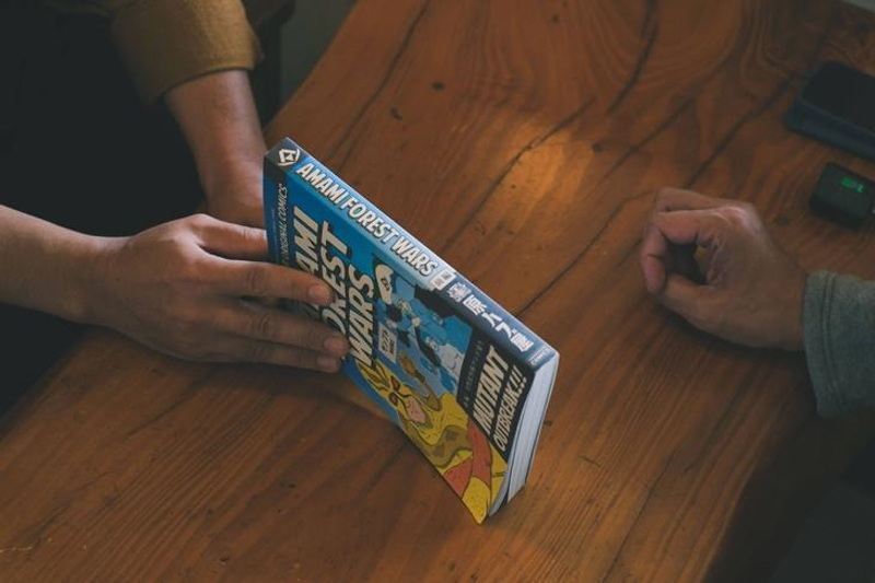 藤本「ハブの素材を使った製品以外にも、ハブをモチーフにしたアナログゲームや漫画もあって。さっそく漫画『AMAMI FOREST WARS』を買って読んだんですけど、マジであれ名著すぎませんか!すごすぎる」