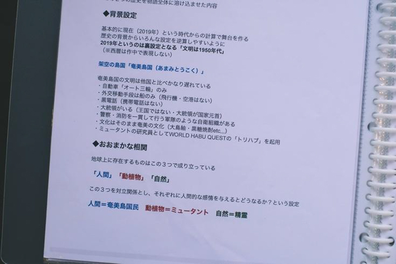 藤本「なるほど、物語のチカラですね。それにしてもそのための設定資料がほんとすごい。頭の中で構想するだけじゃなく、こうして見える形にしたのはどうしてですか?」