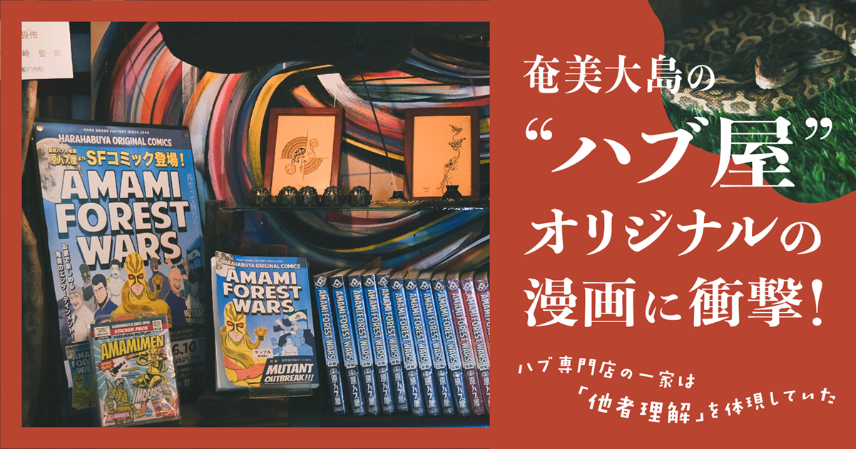 今年、人生初の奄美大島旅で、とんでもないお店に出会った。その名は「原ハブ屋」。奄美大島に生息するハブの素材を活かした製品を制作・販売するほか、ハブの展示やショーを通して、ハブの生態やハブとの共生を伝える、創業1948年のハブ専門店だ。