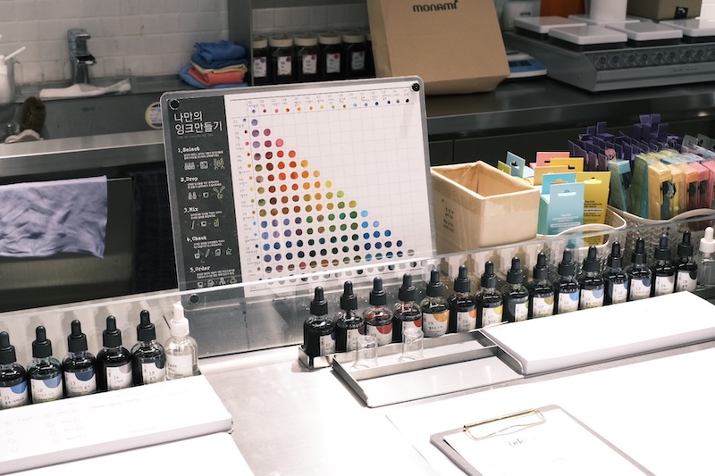 ここではオリジナルのボールペンが作れるのですが、なかでも印象的だったのは、インクを混ぜて自分だけのオリジナルカラーを作ることができるサービス。今のソウルのトレンドだそう。