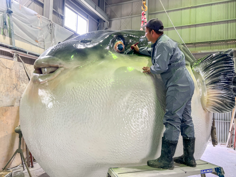 松永 そうやって造形ができたら、塗料を塗って完成まで持っていきます。これはフグをつくっているときの写真なんですけど。