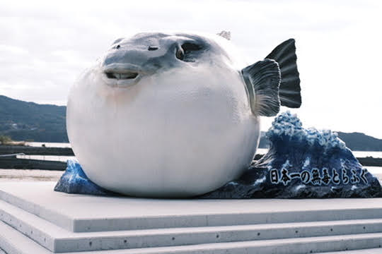 ぼく、日本中を旅するのでいろいろこういうモニュメント見るんですけど、このフグにはほんとうに感動して。