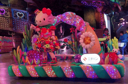 キティちゃんの部屋に遊びに来れて、最後に本人と会える夢のような場所。いざキティちゃんを目の前にすると誰でも絶対にニヤけてしまうはず。衣装が何種類かあるので、いろんな姿のキティちゃんに会えます。昨年のハロウィンの時期はホラーハウスになってました。