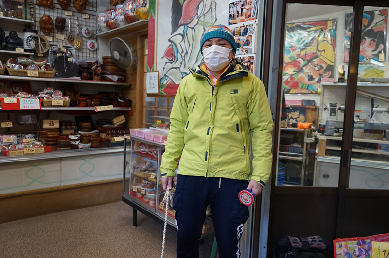 2100円の立派なコマを購入したところ、「その場で回してもいいよ」とのことだったので回してみますね