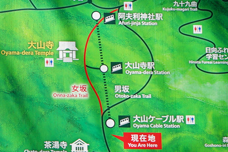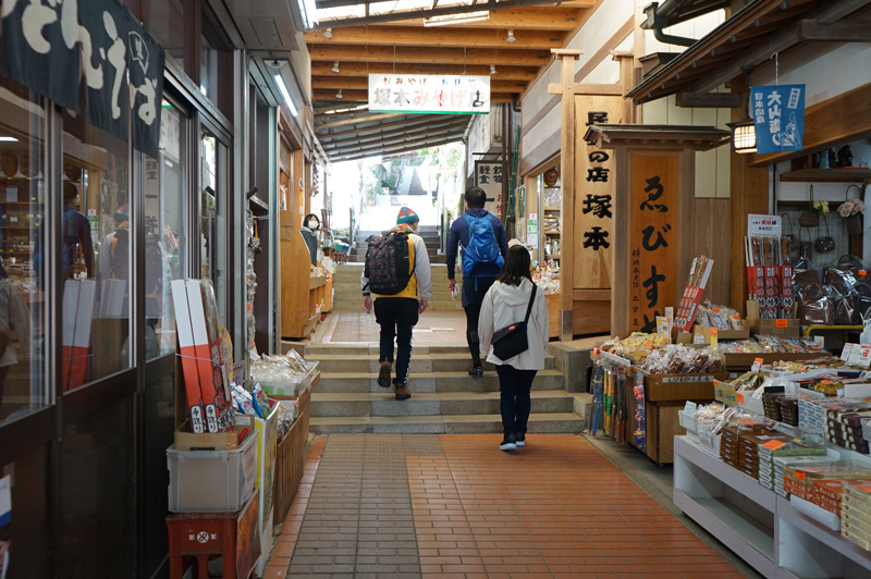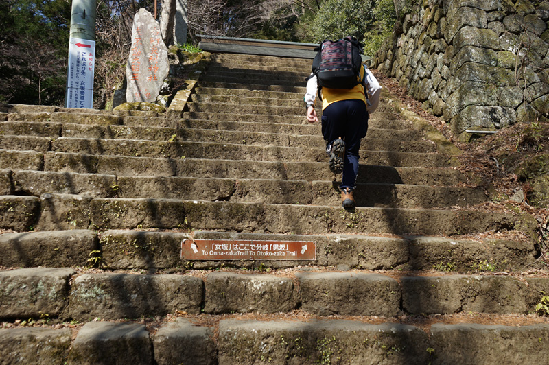 ケーブルカーの駅からすぐ、道は「男坂」と「女坂」に分岐しています。