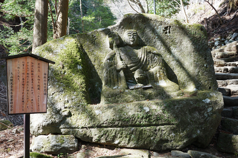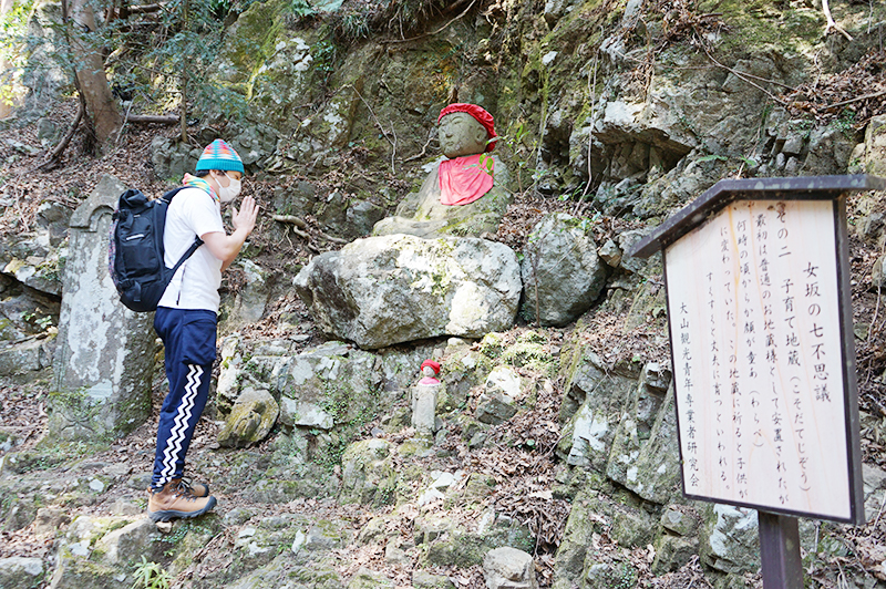 しばらく歩いていると、この登山道に点在する七不思議の立て看板がありました。