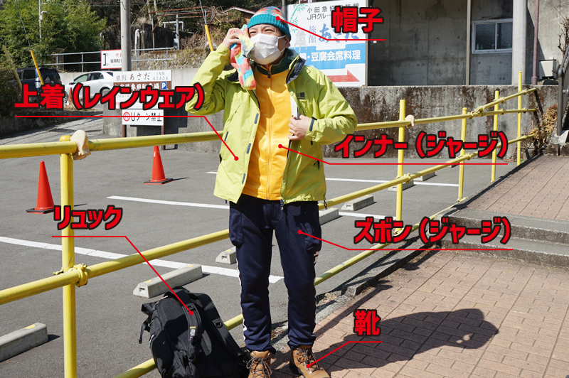 この山は、中腹までなら初心者でも登れるので、ジーパンにスニーカーという格好の人もいました。が、一応「これは揃えておきたい」的なアドバイスを書いておきますね