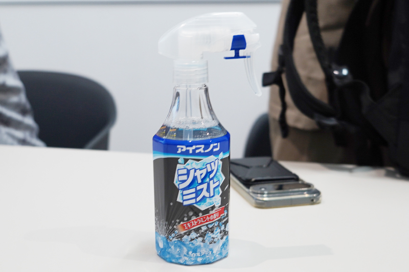 僕がおすすめしたいやつ、これです! 服にかけると涼しくなるミスト。服の内側とかにシュシュってかけるんです。生地が薄いなら服の上からでもいい