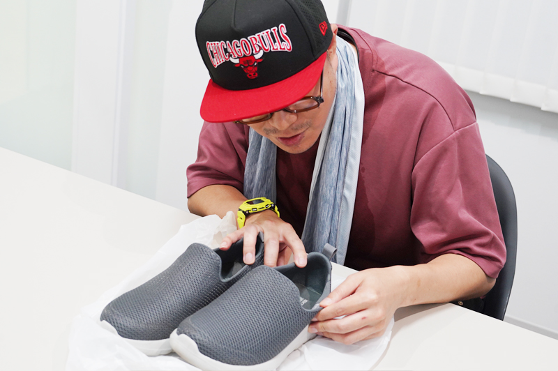 僕、スニーカーもスケッチャーズのめちゃめちゃメッシュのやつ履いてます。各社メッシュ素材のスニーカーって出してますけど、スケッチャーズは断トツで軽い気がしてて、それもポイントですね