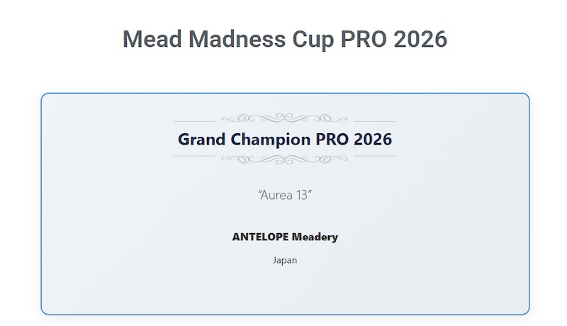 ▶︎滋賀県野洲市のミード醸造所「ANTELOPE」、世界最大級ミードコンペティション「Mead Madness Cup 2026」で日本勢初のGrand Champion PRO 2026を受賞