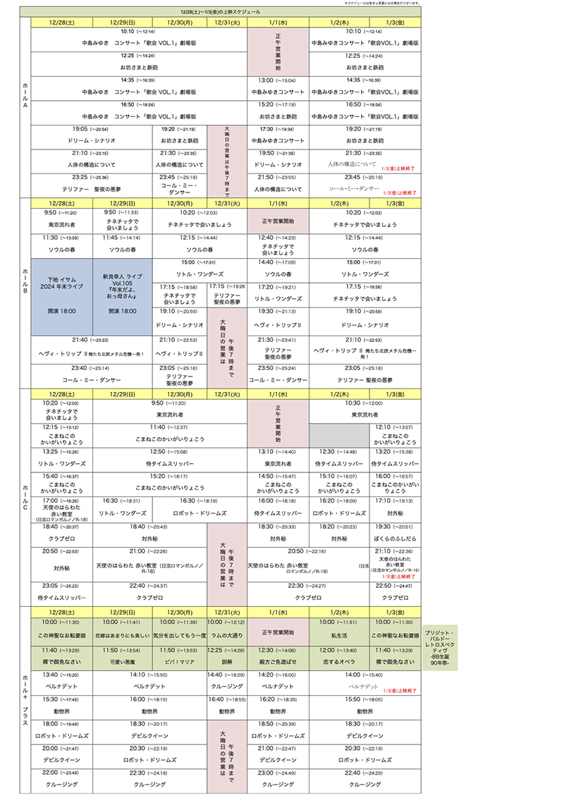 ここは沖縄の映画好きと話をすると、必ず話題にあがる映画館なんです。その絶対的な理由の一つが圧倒的な作品の充実っぷり。試しにHPを見てみてると、2024年末〜年明けにかけての上映プログラムがこちら。