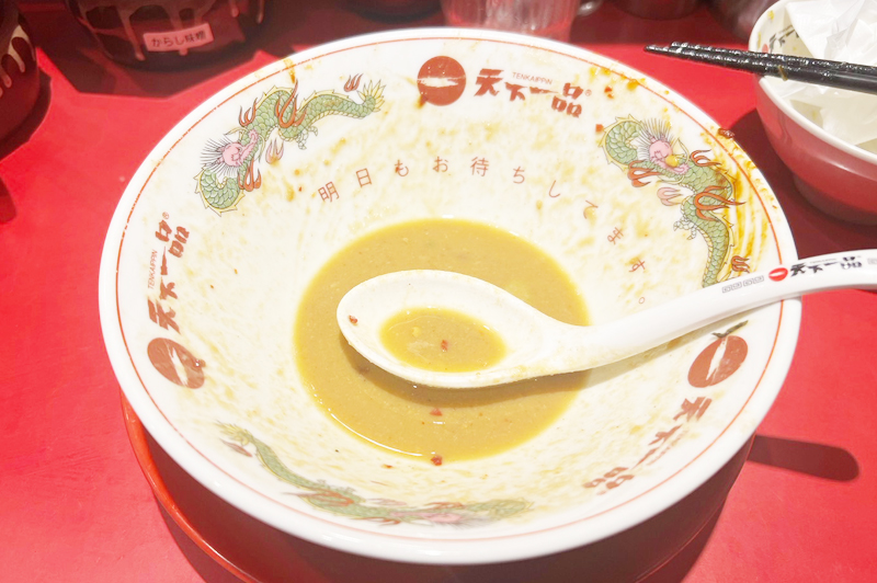 また、店員さんに頼むと”辛子ニンニク”も出してくれます。これは天一のスープにデフォルトで少量入っているもので、よりガツンとした味わいを求めている方におすすめ。