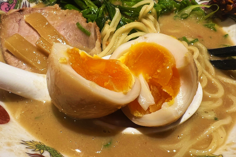 スープを一口啜ると、あ〜これこれ!期待を裏切らない濃厚さ。何度食べても衝撃の味わいです。