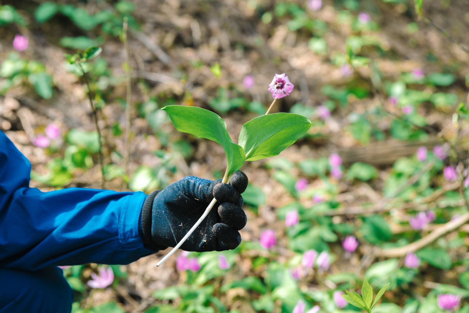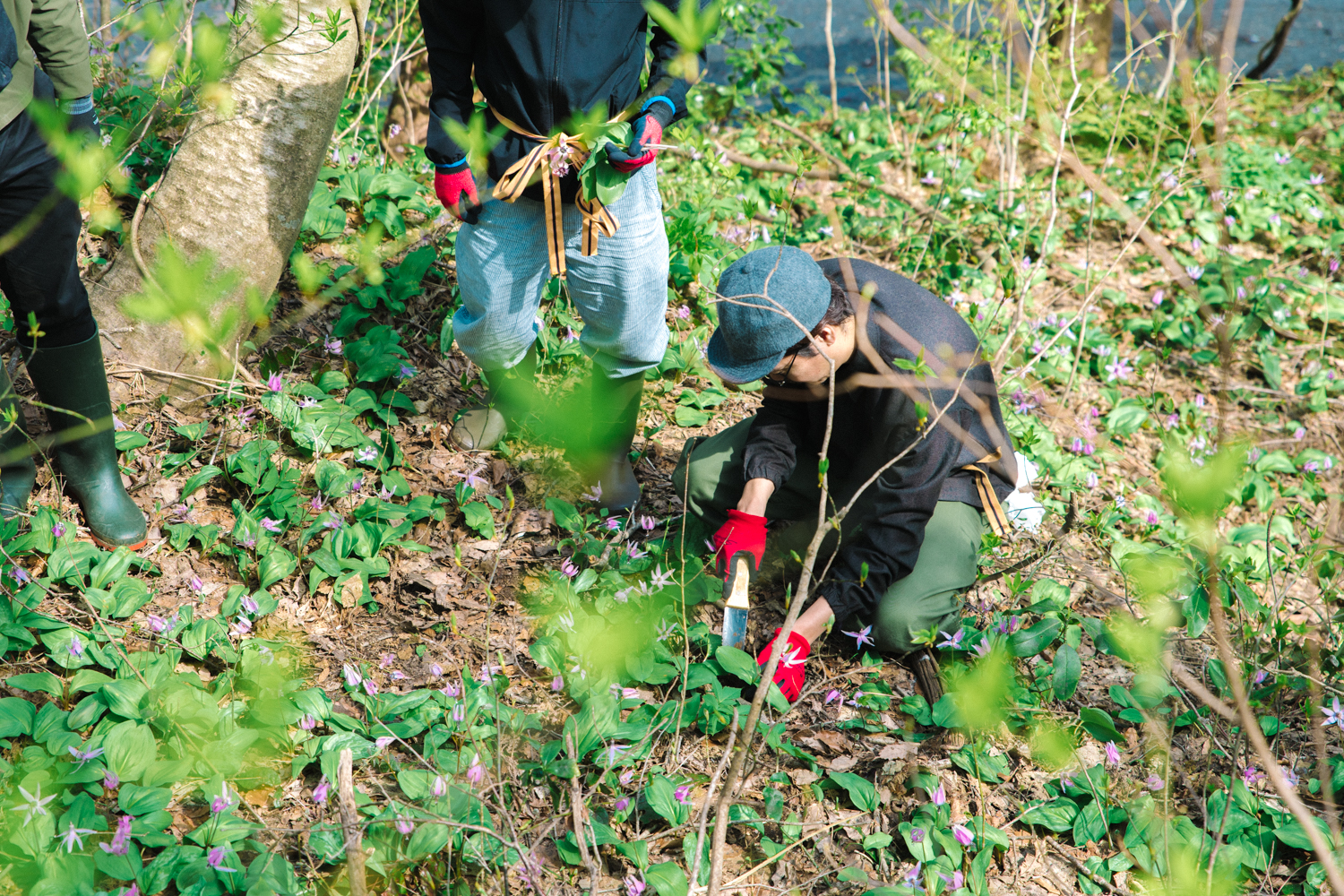「辺り一面のカタクリが咲くまでに、どのくらいの年月があったんだろうと想像しちゃいますよね。僕たちは、これだけ咲いている中から“一部を分けてもらう”という考え方をするべきなんだと思います」