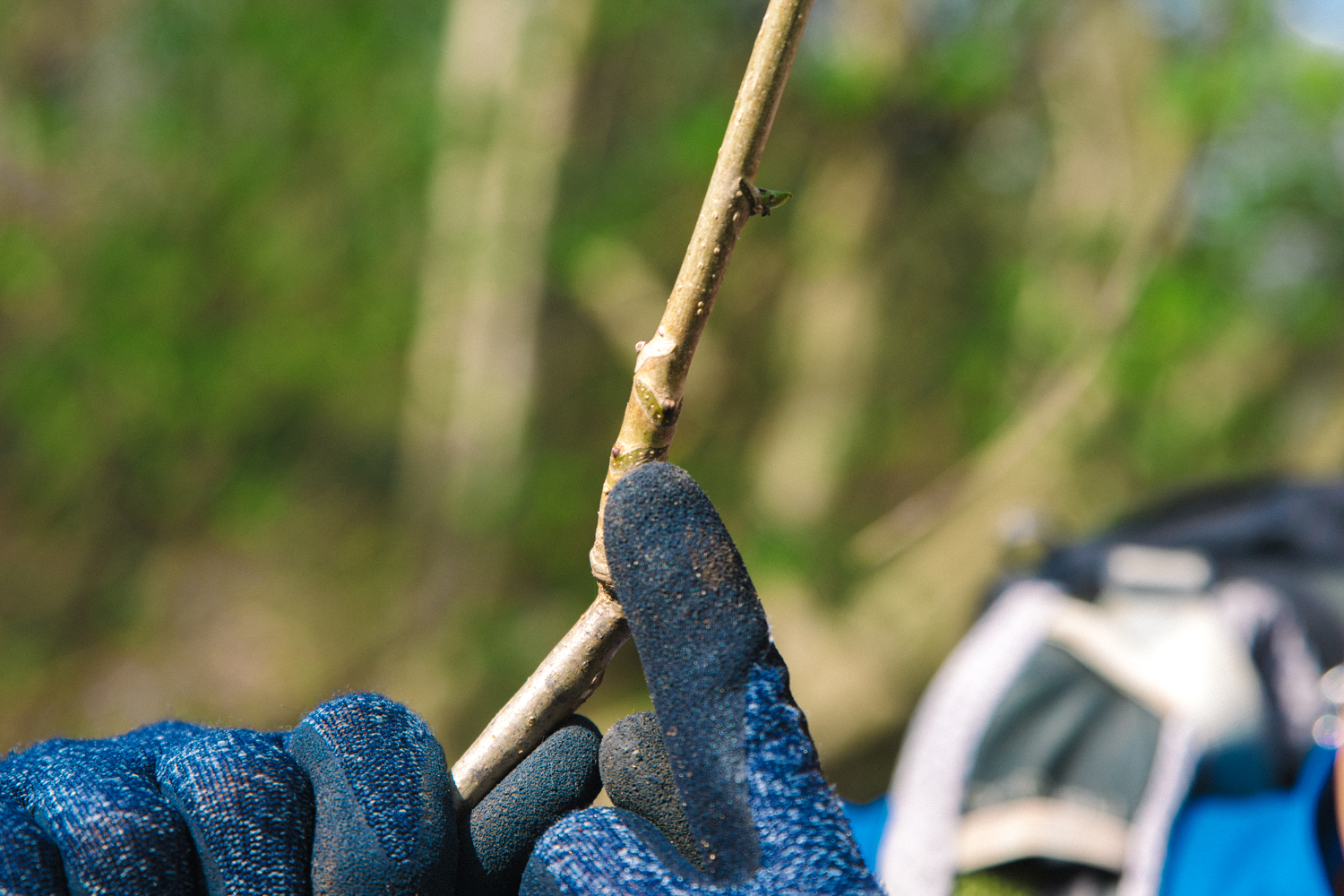 「木の特徴を覚えるといいですよ。コシアブラの枝は肌がサラッとしていて、途中にV字形の模様がついている。さらに、そのV字のなかに点々があるのが特徴です。これは"葉痕"と呼ばれるもので、ここから葉っぱや新芽が伸びていたあとなんですよ。植物にとっては指紋みたいなものなので、この葉痕の特徴を覚えていけば、いろんな樹種を判別できるようになります」