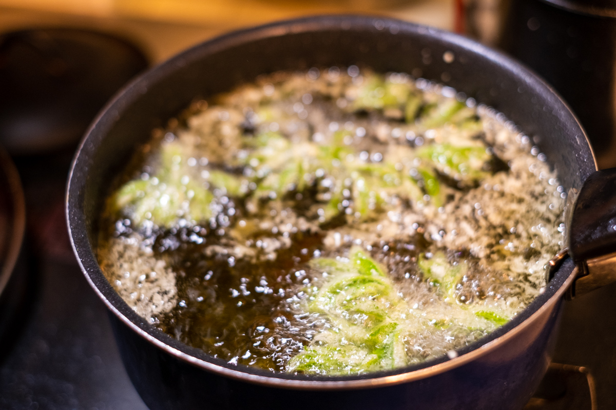 「これにも理由があって。多くの山菜はアクが強いので、食べる時にはアク抜きなどの下処理が必要になります。ただ、山菜のアクは脂溶性といって、油に溶けやすい性質のものが多いんです。だから天ぷらにすると程よくアクが抜けて、山菜のほろ苦さや香りを楽しみやすくなる」
