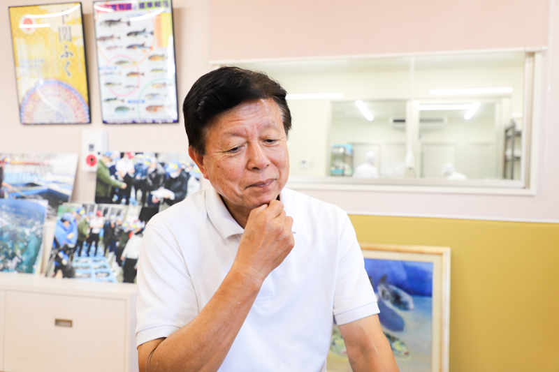 下関でふぐ専門卸問屋「畑水産」を営む畑 栄次さん。俊孝さんと元々のビジネスパートナーで、重太朗さんとともに魚醤「潮醤」の開発を行った