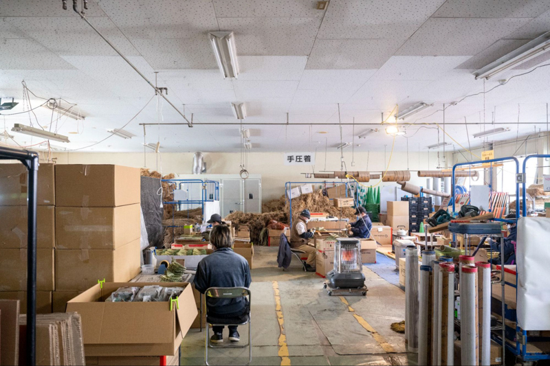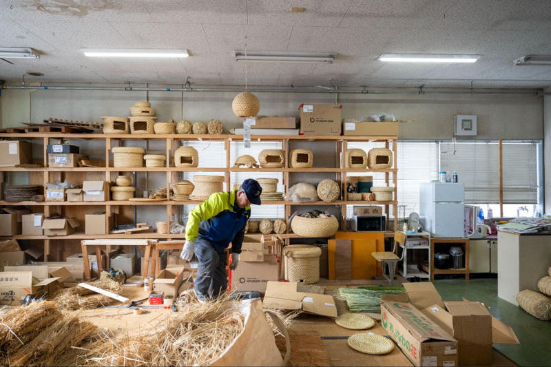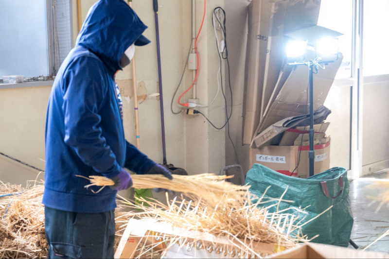 元々、日本人のほとんどがわら細工を作ってましたからね。しかも職人のうち、約半数が自宅で作業しているのでリモートワークにも向いている。B型作業所とも連携して、年間30万個のしめ飾りを半自動で製造してるんですよ。