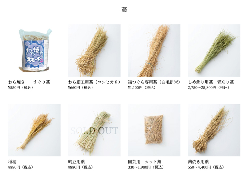 「勝藁」で販売している藁の商品一覧。素材としていい価格です