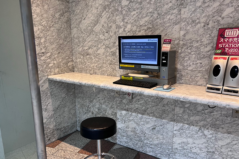 この小部屋で、100円で10分、日本のインターネットが楽しめるんです。