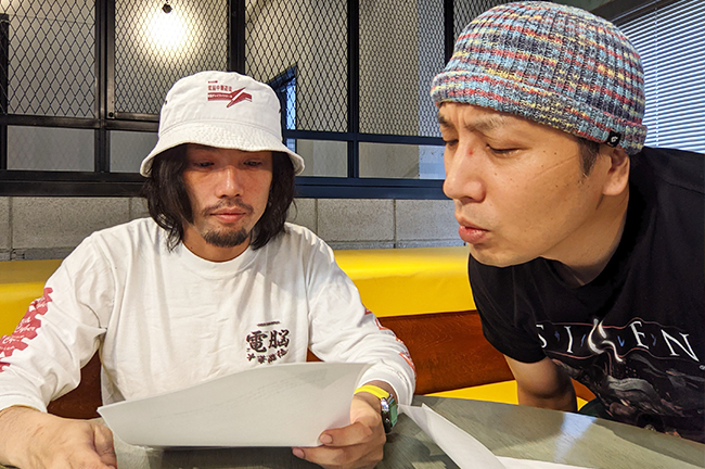 ライターなどから聞いたハンドルネームの由来を2人で読み合っていく