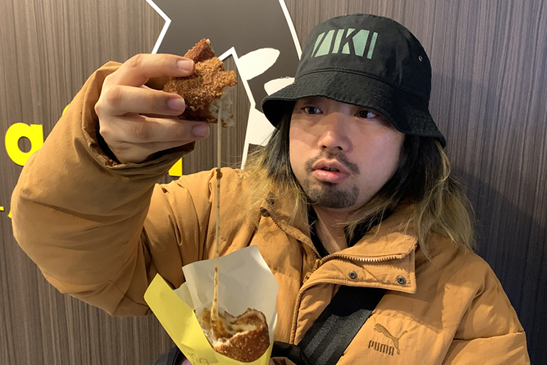 ぼくは「Giraffa(ジラッファ)」のカレーパン(400円)を。スパイスの利いたカレーとガリガリの衣、伸び~るチーズが最高! カレーパン史上一位かも…!