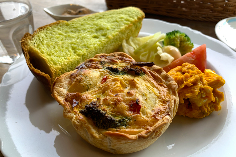 ランチはパスタやリゾットなどたくさん種類があって、どれがおすすめですか?と聞いたら「キッシュです」とのことだったので注文。正直、キッシュってこの世で一番「おいしくもまずくもない食べ物」だと思っていたのですが、めっっっちゃめちゃおしいかったですね。