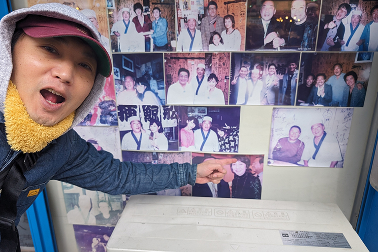 浅草といえば、喜劇人の顔写真看板が飾っているのがいいよね。ここだけ「予約済」ってなってる。